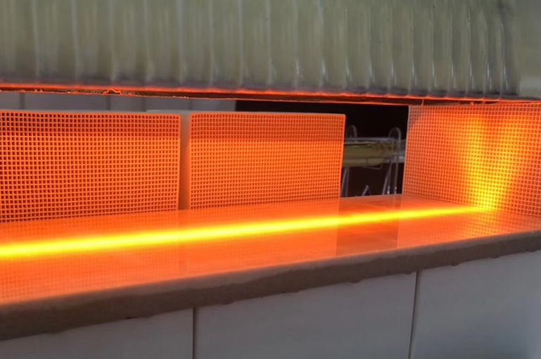 在待折彎的熱塑性預浸料板上進行紅外線快速預熱軟化,雙面加熱,以達到折彎所需工藝要求。利用線型聚焦加熱器(加熱器聚集成一條高溫加熱線)的低能耗,高光強,穿透力強,控制簡單等特點,通過上下布置,快速精準軟化所需的狹長區域,尤其帶有厚度的預浸料折彎加工。